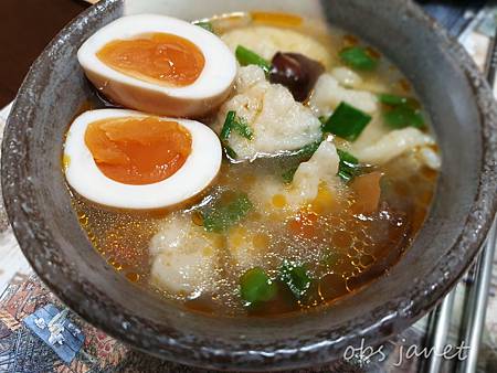 今天做的麵疙瘩是素食版,也可以加點肉片或是海鮮。