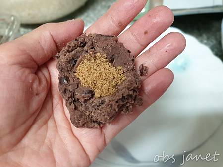 因為希望有不同層次的甜味,在紅豆泥裡包了一點黑糖粉。