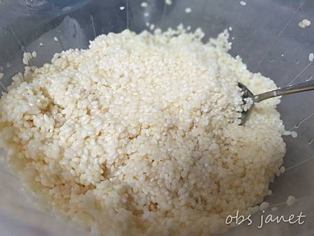 粳油加進去後糯米變成淡黃色的黏稠狀。
