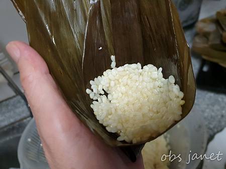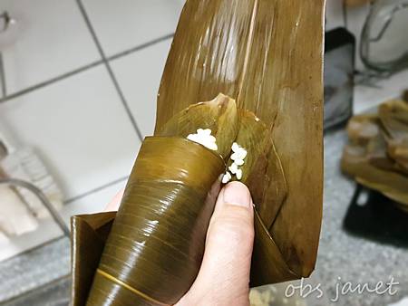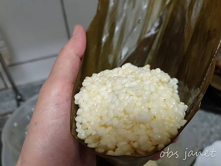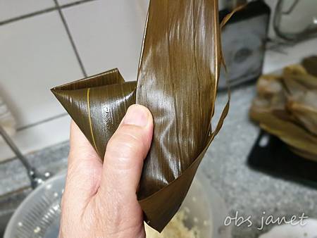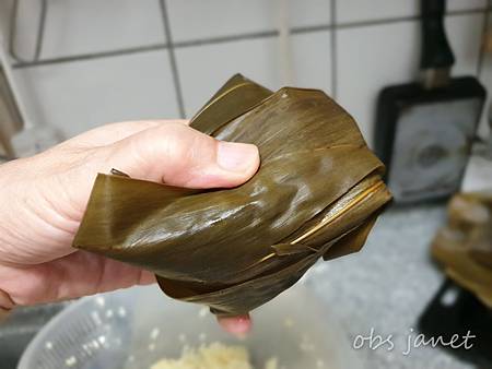 切記、切記、切記,粽子千萬不要壓緊,裡面要留空間給糯米長大,我就是忘了留空間,蒸好的粽子沒有預期的Q軟。残念啊!