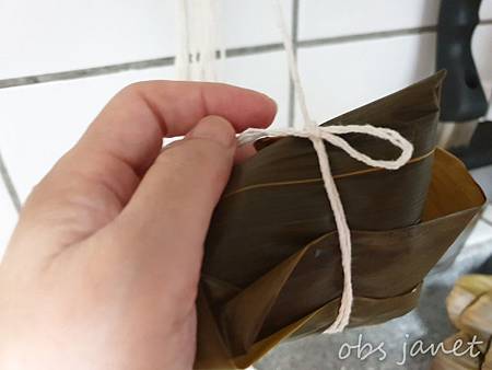 再繞一圈,先打一個結,再打一個活結,方便拆粽子。