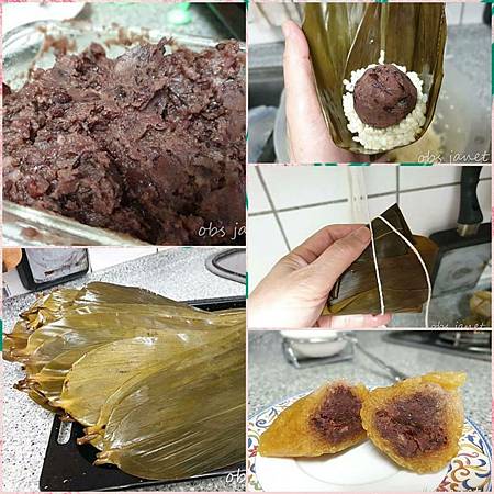 滿滿的紅豆餡,唯一的缺點就是忘了預留膨脹的空間,粽子太緊實。