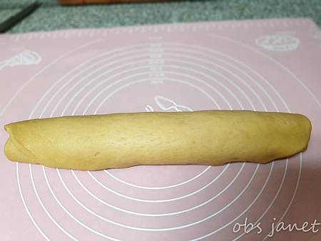 將麵皮捲好,收口置於下面。