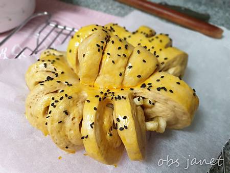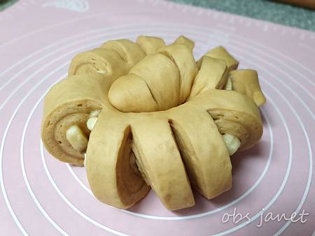 烤箱預熱,發酵好的麵糰用150度烤20分鐘。