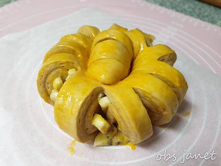 麵團上面塗一層蛋黃液。
