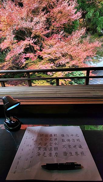 在美景中抄好簡短的經文,放鬆又自在,若不是回頭看到身後拿著經文抄寫文具默默等候的遊客,實在捨不得離開這個禪意小角落。