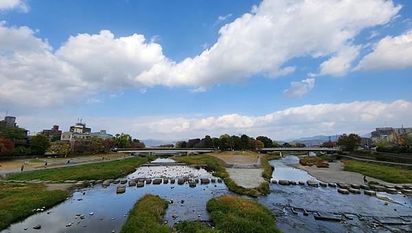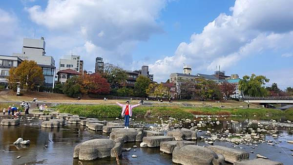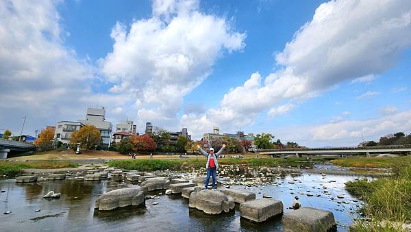 鴨川有幾處有橫跨河川的『飛び石』,在出町柳段有烏龜石和水鳥石,這裡是規模最大,也是最多遊客來此跳烏龜過河、找回童心的河段。