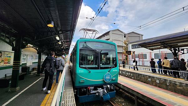 走上叡山電鐵貴船站二樓,往月台上一望,只有一個字:哇!!!