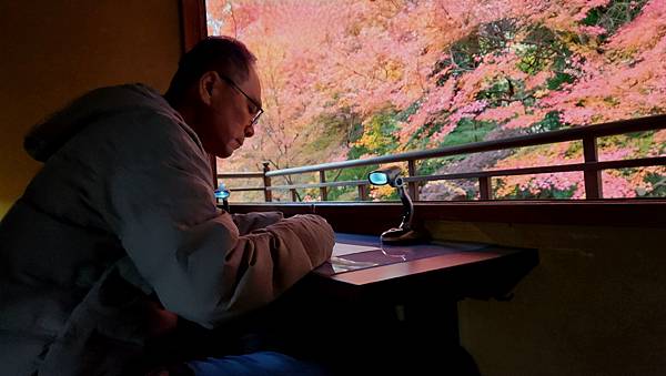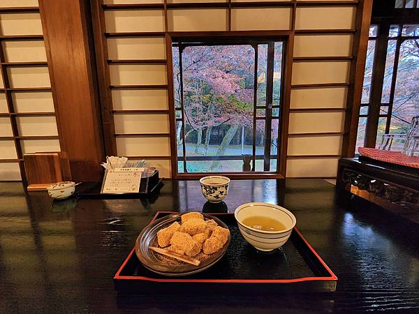 這麼美的仙境需以各種方式逗留、欣賞,於是我們走進池畔的『阿闇梨寮壽庵』。