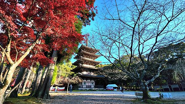 順著遊園路線往山下走,回頭遠眺三重塔,此為日本最大的三重塔。