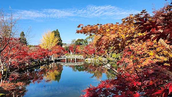 東福寺興建於1236年,為京都五山之一,平日人氣不高,在楓葉季時卻是熱門賞楓景點,寺內的紅葉集中在通天橋、臥雲橋、洗玉澗這區域。