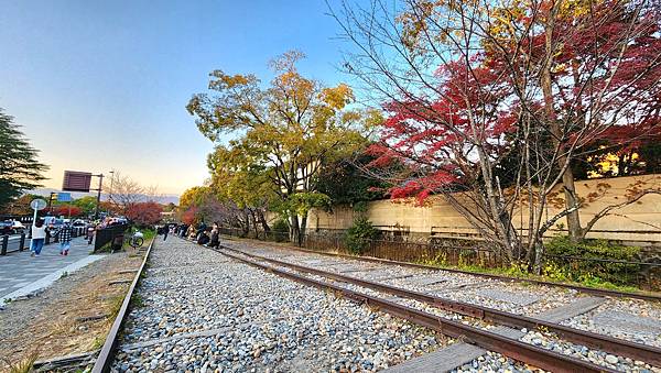 怎麼有這麼美的車站呀!月台邊就是一整排美炸的紅楓。