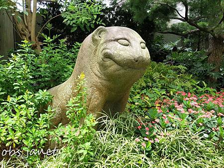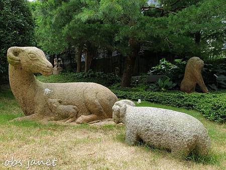 園區內沒有似錦的繁花,只有滿眼綠意與低調的園林,和融入其中憨厚的小獅子、霸氣威風的神獸、溫沉靜謐的達摩、慈祥莊嚴的佛像,以及似見非見的不知名動物。