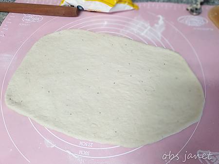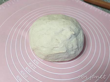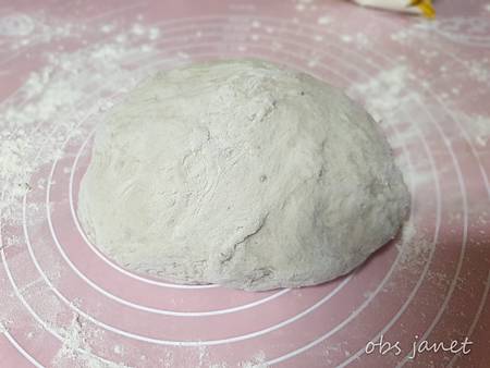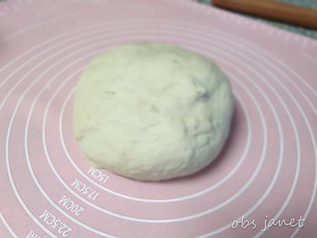 將發酵好的麵糰放至揉麵墊上,灑點麵粉以防沾黏。