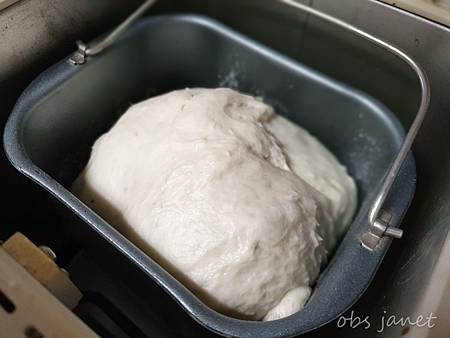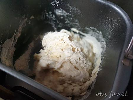 將這些材料放進麵包機裡攪拌(用手搓揉亦可)