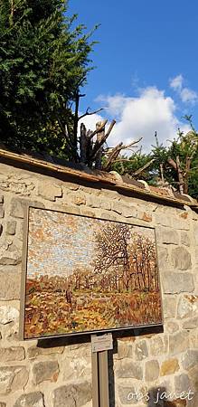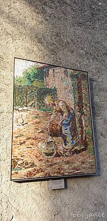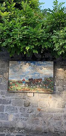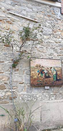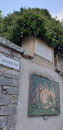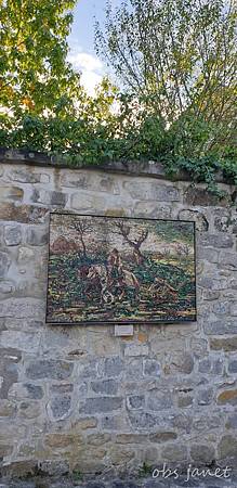 『大街』兩旁樸實無華的石牆上處處可見馬賽克的巴比松畫作,在宜人的天氣與牆頭的綠色植栽映襯下,整個村莊儼然就是巴比松畫派的華麗展覽場。