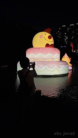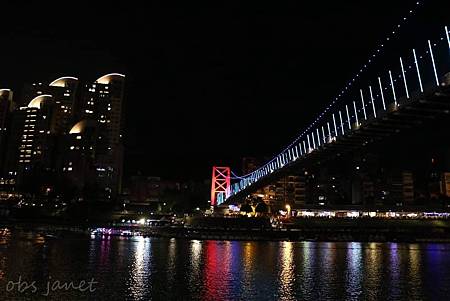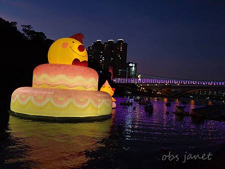 待夜幕低垂,吊橋上的燈也亮了,水岸餐廳傳來浪漫情歌聲,水波蕩漾,月亮蛋糕似乎在與水面的倒影隨著樂聲共舞,!