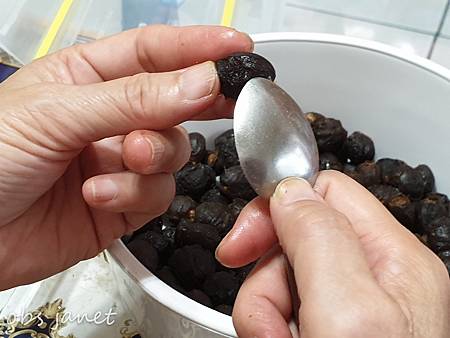 將龍眼乾全部去殼後,把手洗乾淨、擦乾,準備進行下一個動作 ~ 去籽。