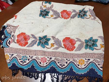 這條舊棉布桌巾已經剪去做過三個包包、四個保溫杯套,再次找出來神救援做包包。