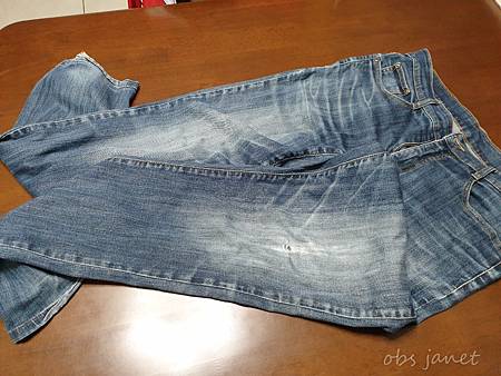 OJS有一件牛仔褲穿到磨損嚴重,女兒也有一件褲底破幾康的牛仔褲,勤儉持家的OBS想了想,在網路上參考牛仔褲改造包高手的作品後,決定把褲剪了做個牛仔布托特包。