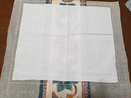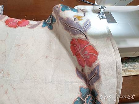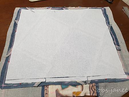 因為沒仔細量尺寸,有些布片沒對齊,調整過之後外圍有些內縮不整齊,稍後再修剪。