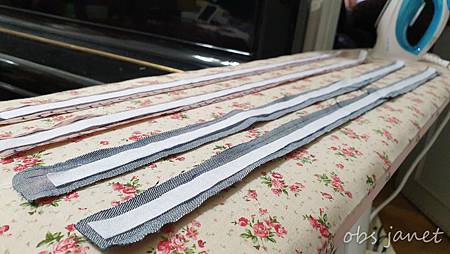 將帶子上的縫分往內摺好,熨燙定型,方便車縫。