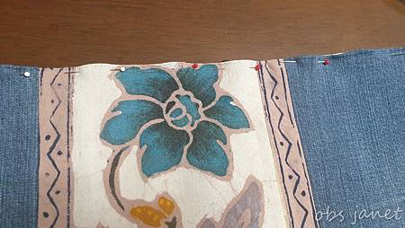 帶子的一面用丹寧布,一面用花布,比較不單調。