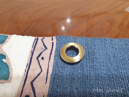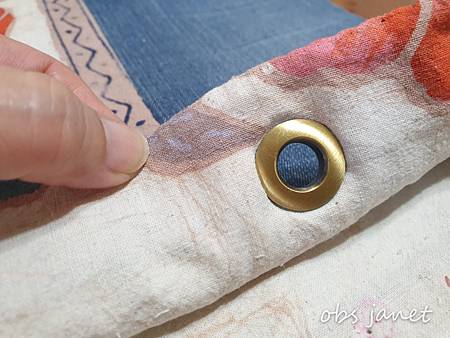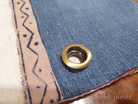 將洞口比較小的銅釦先套進洞,把布邊壓實,OBS怕布邊會散開,還點了一圈三秒膠。