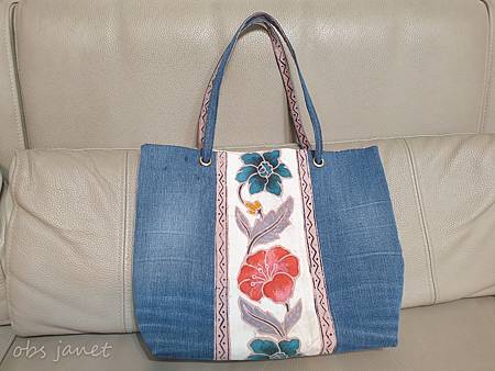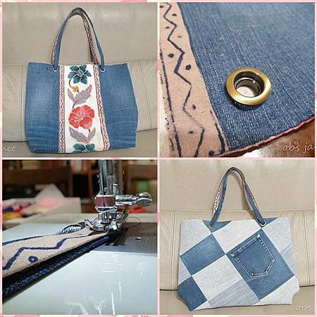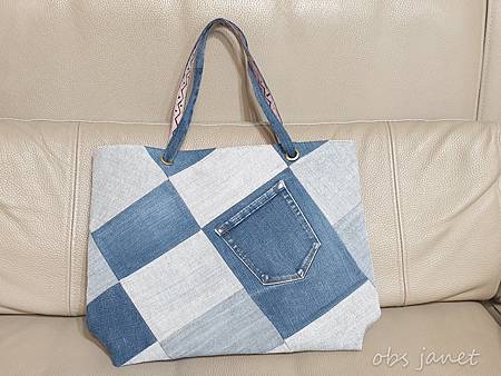 兩面不一樣風格的牛仔布托特包完成,可以搭配不同的衣服,一包兩用。