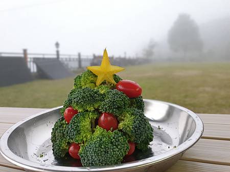 還好出門時記得抓一顆楊桃,聖誕樹上才有一個應景的星星![]()