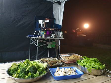 後來OJS跟雨棚區露友很有得聊,他們一家是第三露,虛心請教了OJS很多露營相關問題。