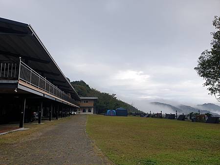 這是下層營地,分草皮區與雨棚區,我們到的時候雲霧縹緲,沒有放晴的跡象,但是露營就是想接地氣嘛,所以還是冒著收濕帳的風險選了草皮區。