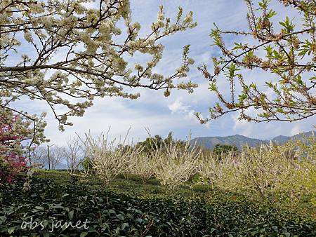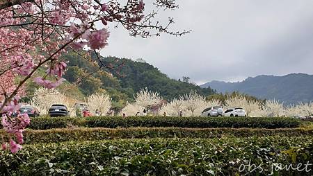一彎進去就眼睛一亮,太奢侈了,茶園有盛開的粉紅櫻花與白櫻迎接我們,當然還有桃花與李花。