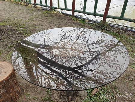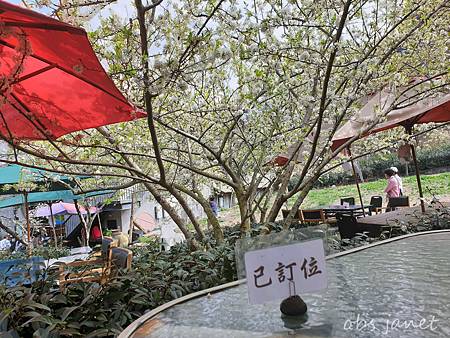 因為有預先訂位,到櫃檯拿了已經寫好名字和桌號的牌子擺在桌上,先逛逛茶園、欣賞茶園李花風光。