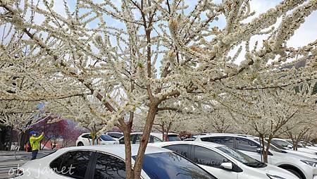 每一棵李花都是滿開的,這些車子有盛開的李花遮蔭,停車費應該要加倍吧!![]()
