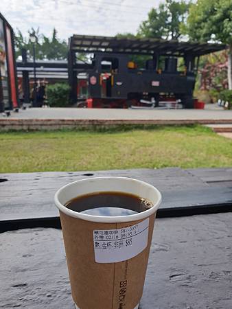 如此用心烘焙的咖啡本應坐在咖啡廳內細細品嚐,可陽光這麼燦斕,戶外用五分車軌枕木製作的座位如此開闊舒適,只好捨棄密閉的室內座位了!