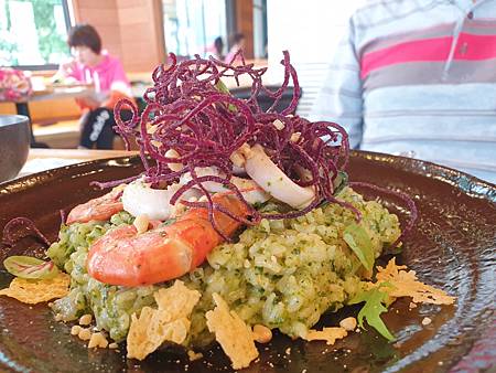 這裡的餐點好看,不過燉飯上桌時卻不夠熱,口味也普通。