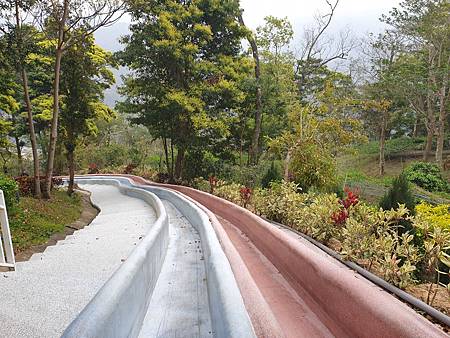 回到了大門口,樹屋旁有幾道長長的溜滑梯,OBS心臟不夠強,還是別試了!