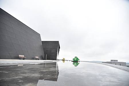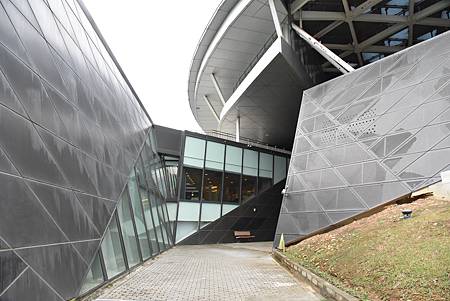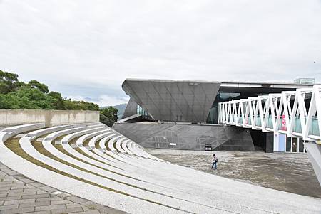 走著走著,展覽館現代感十足的造型慢慢完整呈現在眼前,建築物本身無疑便是一個現代藝術品。