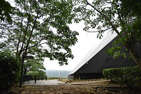 文物展覽館的鋼骨玻璃建築與遠山相襯而不突兀。