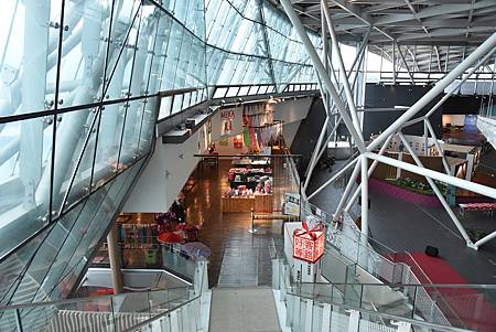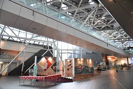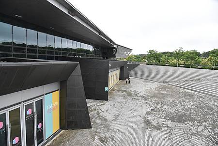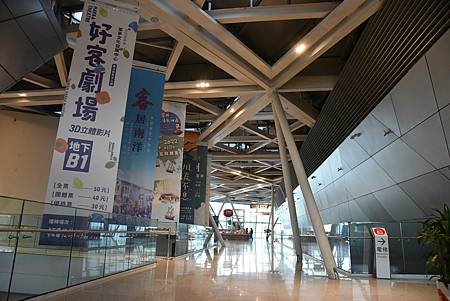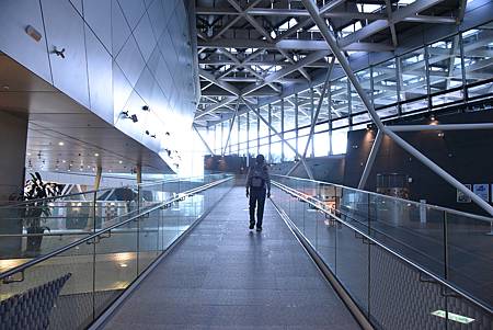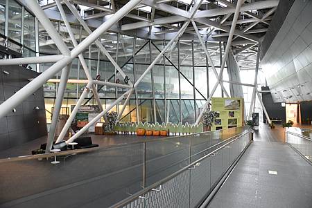 一入館內目光便被屋頂的鋼骨樑柱所吸引,鋼骨網格在開放式的空間內交錯著,館內猶如一座位於山丘上的鋼骨森林;節能玻璃屋頂與雙層的玻璃帷幕外牆確保了室內的光源與隔熱,這建築可是一座榮獲『黃金級綠建築標章』的文化設施呢!