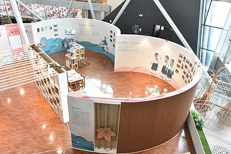 一樓有寬廣的緩斜坡供遊客蜿蜒繞行展覽館半圈漫步上二樓。