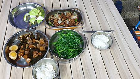 現在慢慢練習在野外煮白飯,現煮白米飯配兩道全聯熟食,再炒一個青菜,也是挺享受的。