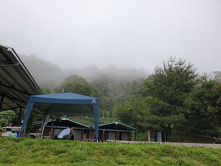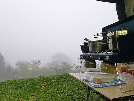 營區的霧越來越濃、越來越濃,然後就認真下雨了。
