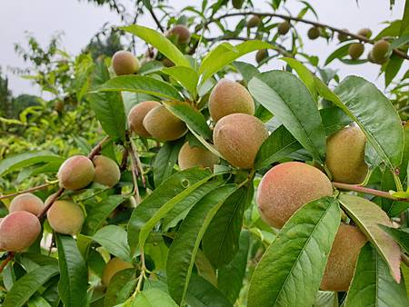 營主說營區有130棵『春風』水蜜桃,最大曾經重達288克,不過營主未施肥,任由它自由生長,今年又缺水,所以果實並不大。