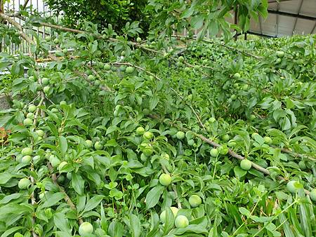 A區下面有一排紅肉李,滿滿的果實把枝條都壓裂,垂到地面了,神奇的是,僅餘約1/3未斷的枝條還可以繼續供給果實成長的養分。