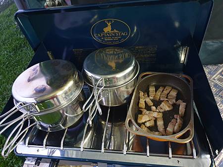 這個雙口爐用了將近20年,還是超好用的,三面擋風,白飯煮熟後移到兩個爐火中間保溫悶熟,短時間內便可以完成一飯三菜。