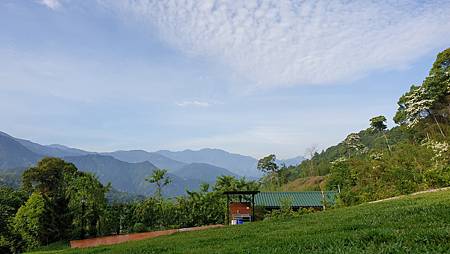 我們的營位真是太棒了,因為A區和B區中間是一個緩斜坡草地,沒有欄杆,所以視野非常開闊,對面美麗的山景盡收眼底。