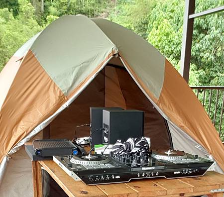 今日有四帳進住,八個陽光大男孩早早就到營區,他們認真玩耍,準備了專業音響設備,甚至還有『值星官』背帶,今晚想必越夜越嗨森。