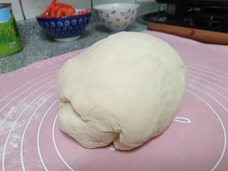 用OJS辛苦外出買回來的麵粉做了一個麵糰,麵粉300公克,鹽6公克,糖6公克,酵母粉3公克,水150ml,做出一個偏硬的麵糰。